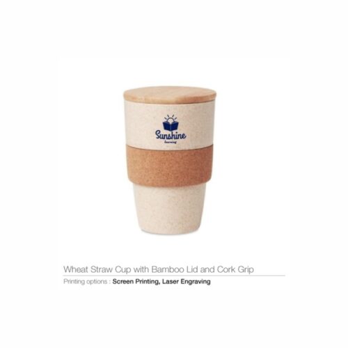 Wheat Straw Cups with Bamboo Lid and Cork Grip